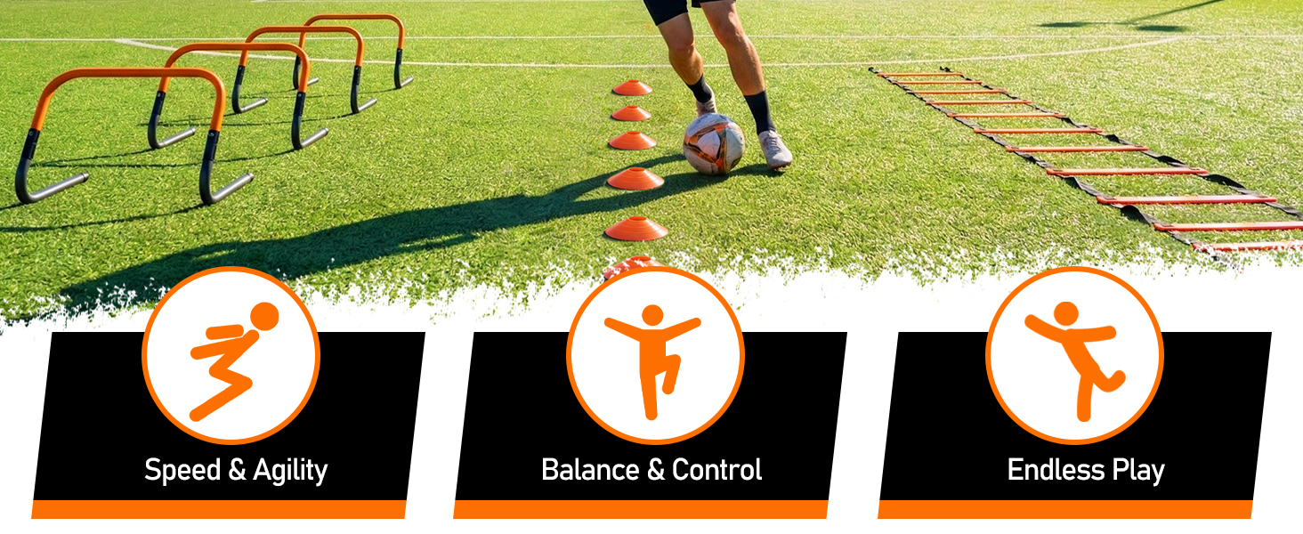 Engineered for Multi-Sport Athletes of All Ages: Perfect for developing agility, speed,reaction time, and coordination across a wide range of sports including Soccer, Football, Basketball, Softball,Tennis, Hockey, Track & Field and more. An essential sport football gear for kids,youth teams, adult training sessions, personal coaching, and family fitness