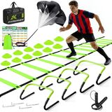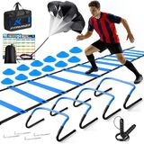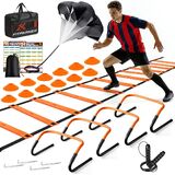 Agility Ladder, Soccer Football Training Equipment Set - 20ft Speed Ladder, 4 Hurdles,Parachute, 12 Cones & Jump Rope | Agility & Speed Training for Kids Youth Adults,Basketball & Football Accessories