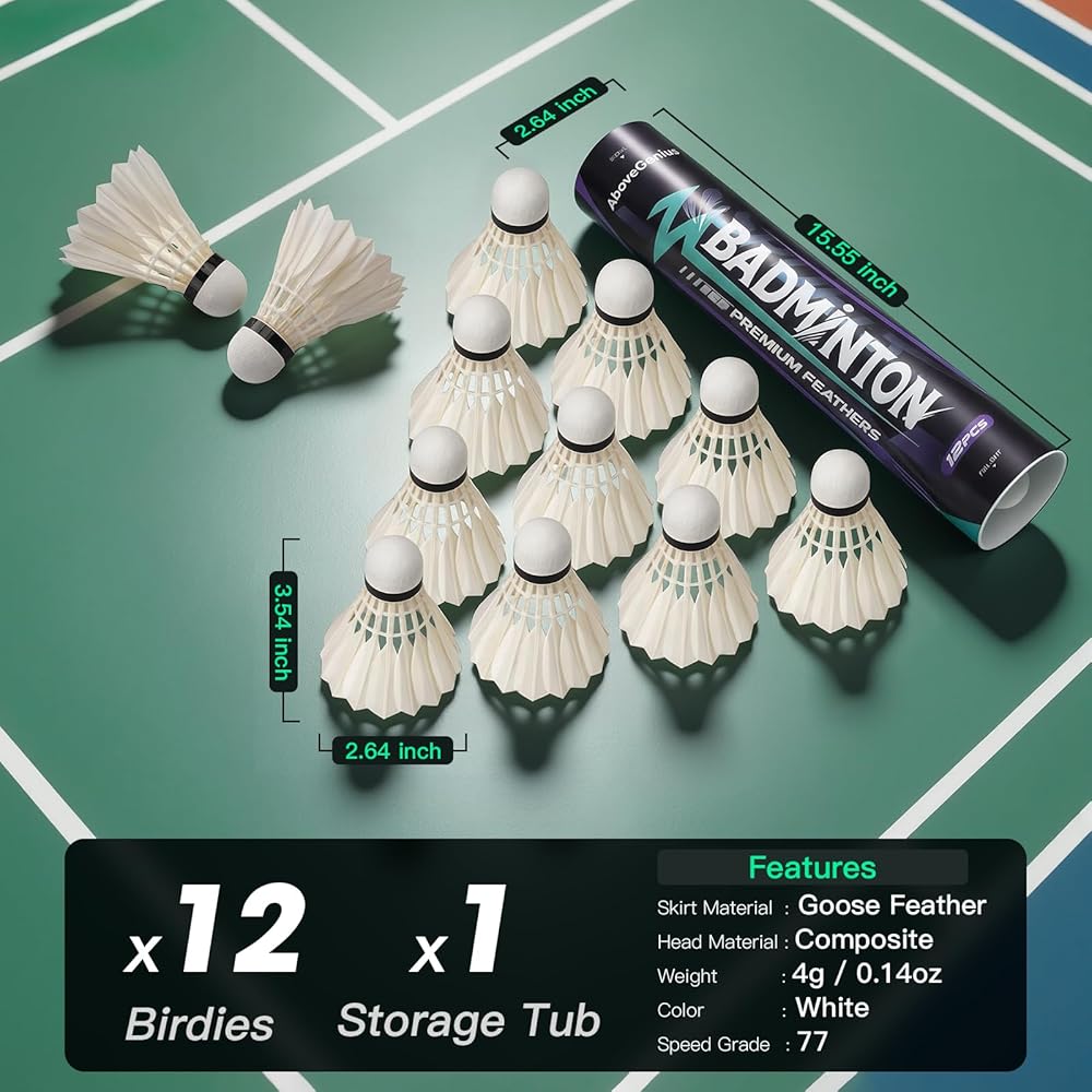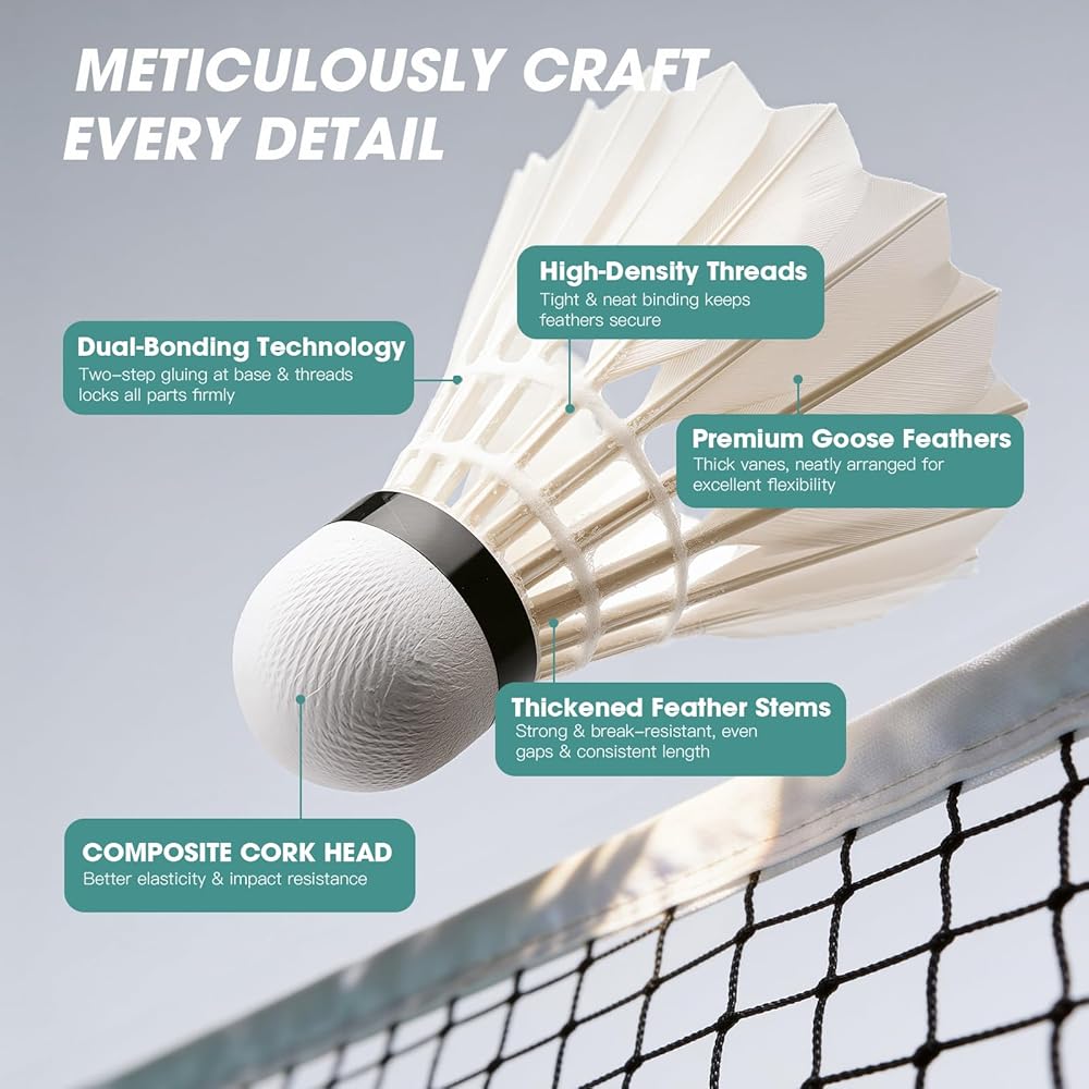 Goose Feather Badminton Birdies 6/12 Pack, Badminton Shuttlecocks with Stability Durability, High Speed Shuttle Balls for Indoor Outdoor Backyard Practice Training