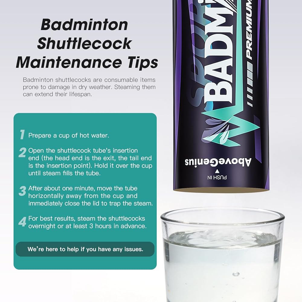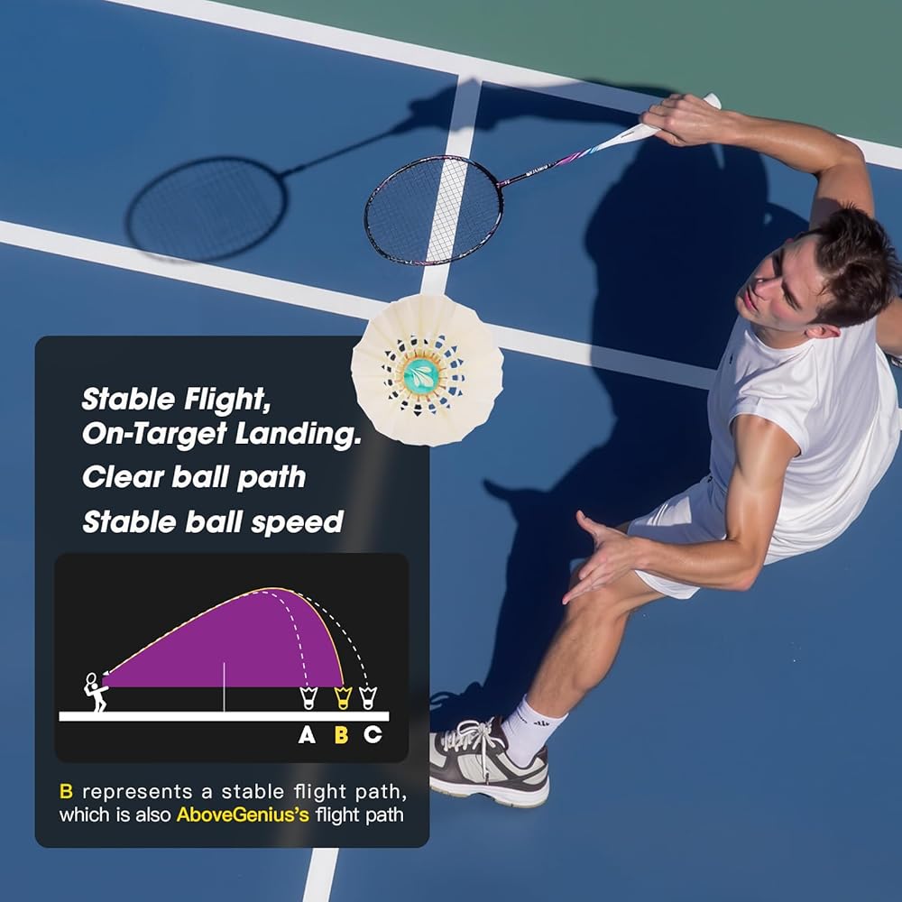 The AboveGenius Goose Feather Badminton Shuttlecocks are designed with everyday players and family fun in mind. Whether you are a beginner picking up a racket for the first time or a badminton enthusiast who enjoys regular backyard games, this 6 or 12-pack offers a dependable and enjoyable playing experience. Packaged in a protective, heavy-duty tube for easy transport, our birdies are crafted from genuine goose feathers. We understand that practice means plenty of strong hits, which is why we use a dual-coil reinforcement process. This thoughtful construction effectively reduces feather ungluing and breakage, meaning you can play longer without constantly reaching for a new shuttlecock. On the court, the standard 16-feather design ensures a steady and predictable flight path, helping you practice your timing and control. Paired with a composite cork head, every swing delivers a solid and satisfying impact feel. Suitable for both indoor gyms and outdoor backyard settings, these birdies are your reliable partner for casual training and recreational matches. If you have any questions, please reach out to us for a prompt solution.