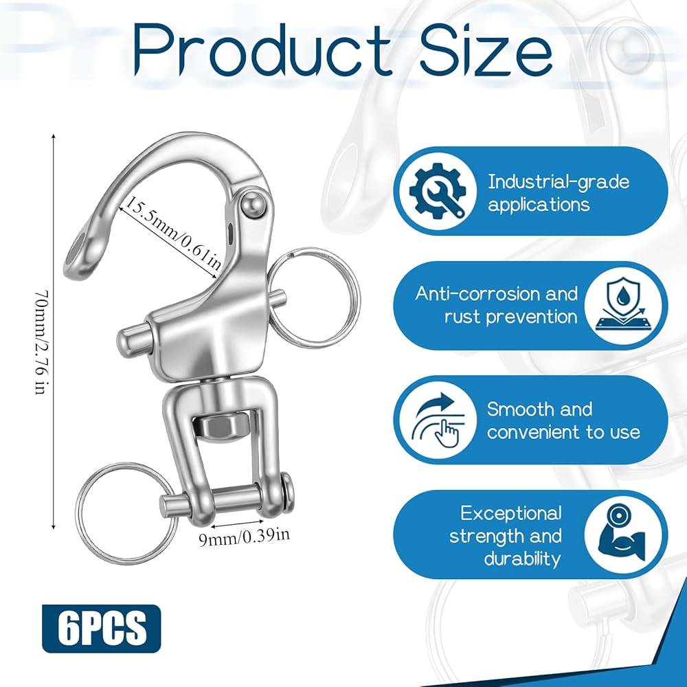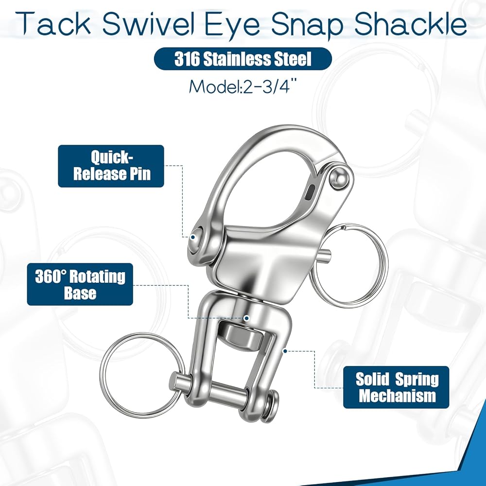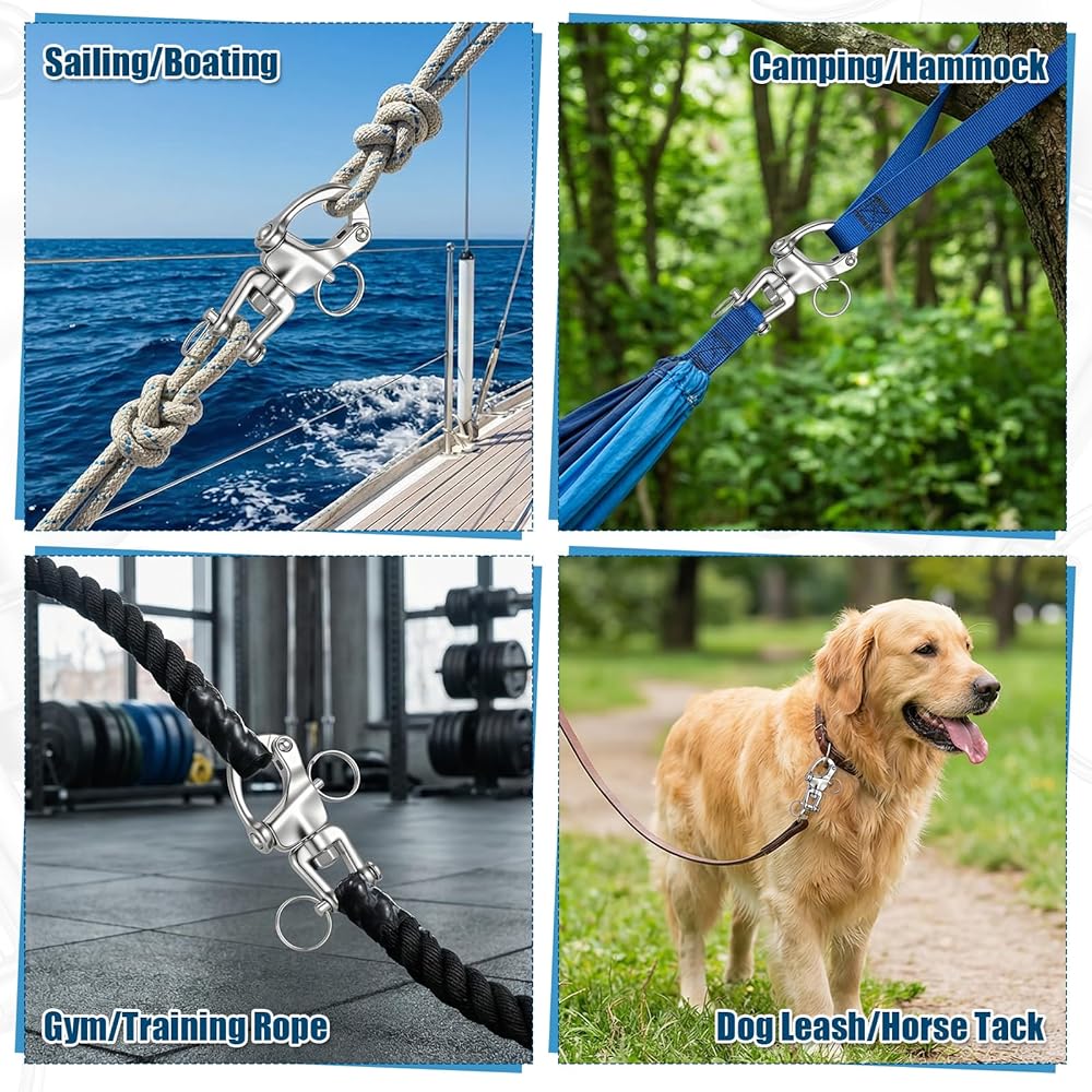• 【Stainless Steel Swivel Snap Shackle】Our stainless quick release swivel shackle prevents your ropes and lines from tangling, giving you maximum flexibility during use; Whether for sailing or anchoring, enjoy hassle-free operation and smoother handling