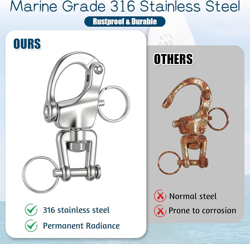 • 【Material】Our U duty quick release spring hook made from AISI 316 stainless steel with added molybdenum, offering superior corrosion resistance in high-chloride environments; Built to withstand saltwater, humidity, and heavy duty industrial use