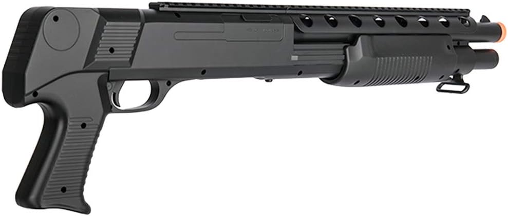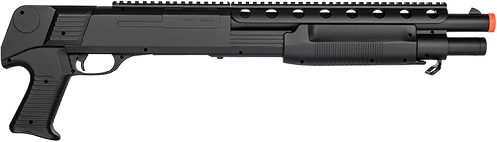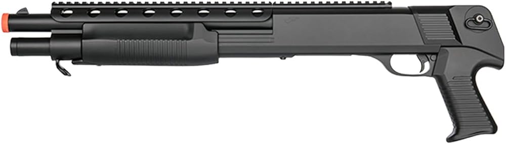 Close to a 1:1 scale replica of the real firearm and comes with weaver rail on top of shotgun with pistol grip and tactical top rail