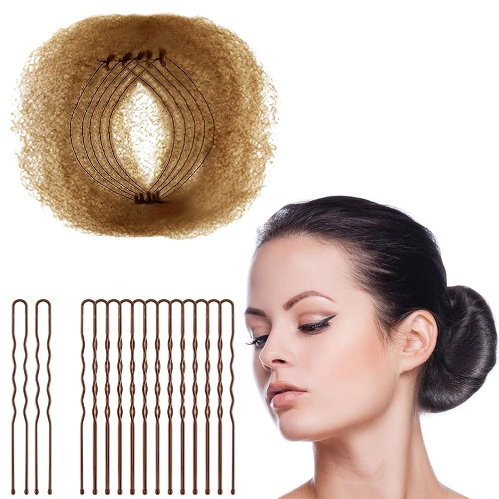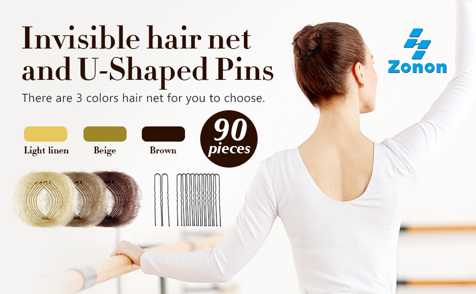 Zonon 50Pcs Bun Hair Nets & 40Pcs U Shaped Pins for Ballet, Invisible Elastic Edge Mesh Ballet Bun Nets Hair Accessories Set for Women, Girls, Kids(Light Brown)