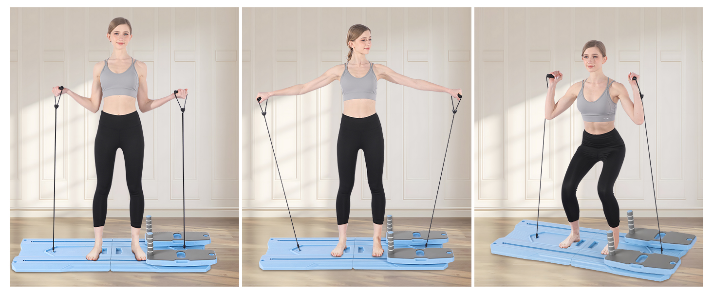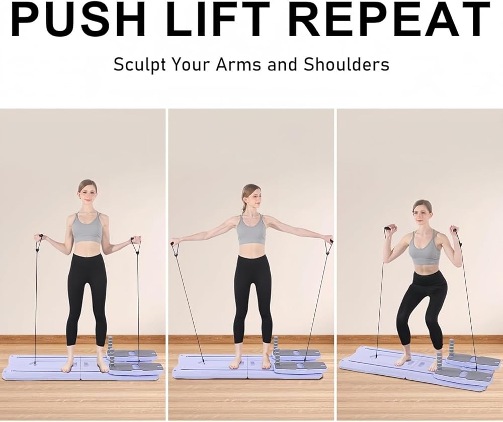 【Transform Your Home into a Studio】Upgrade your home workouts with our foldable 8-in-1 pilates reformer board, designed to deliver professional studio-quality training anytime. Compact enough to slide under a bed or sofa, this portable pilates machine is ideal for full-body strength, balance, and flexibility training.