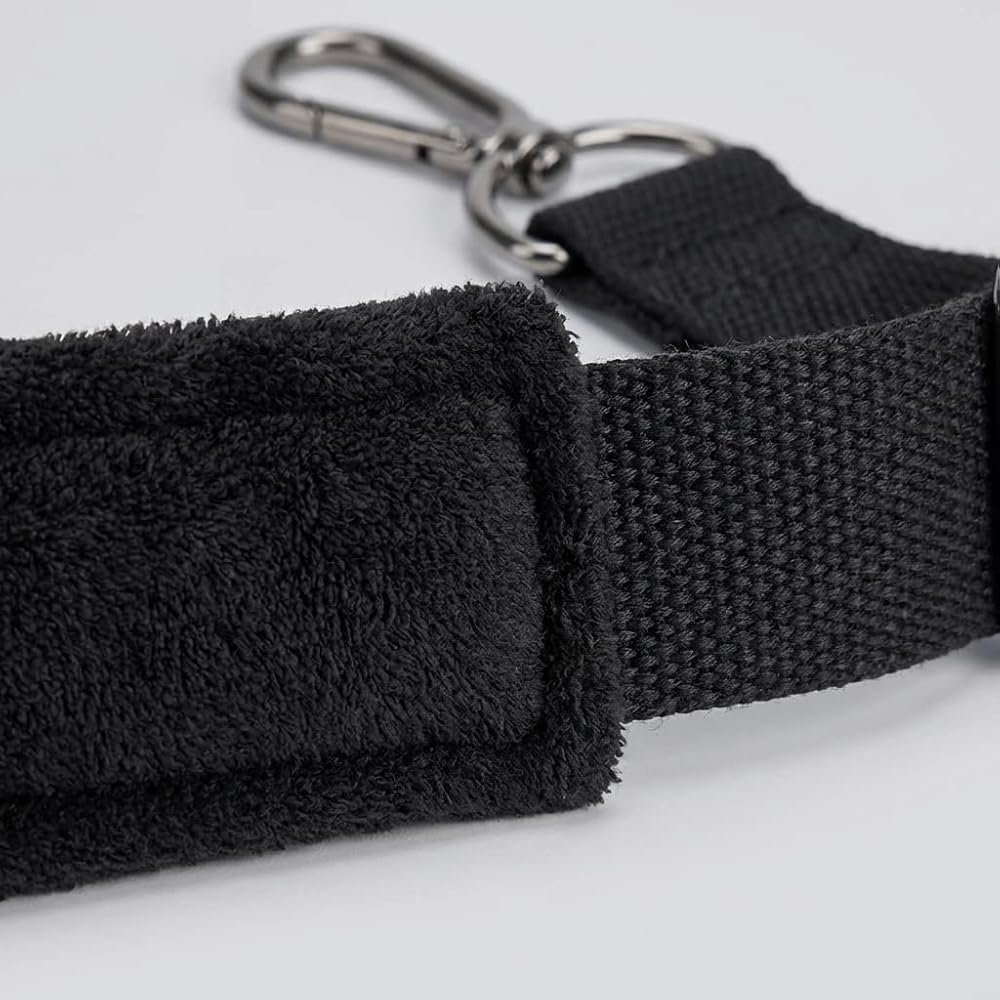 This black Pilates hook strap can be used to secure feet or legs and assist with arm exercises, providing safe, comfortable support and traction