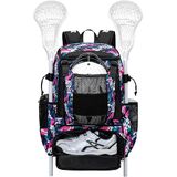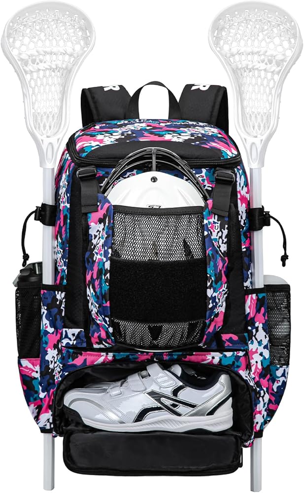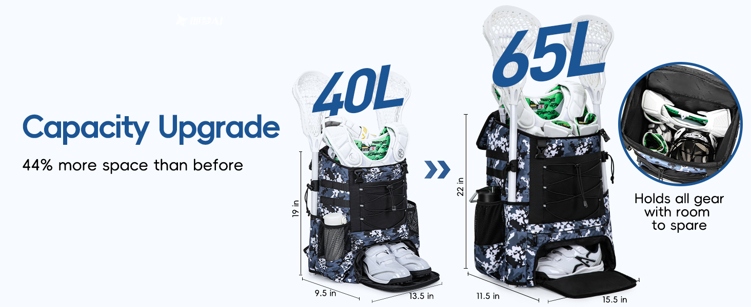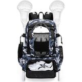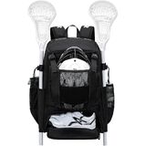【65L TOURNAMENT CAPACITY】Engineered for tournament-ready performance, this 65L lacrosse backpack (22*15.5*11.5 inches) comfortably holds all essential gear for dedicated youth and adult players, including a helmet, full pads, gloves, cleats, and two lacrosse sticks, ensuring you are game-day ready
