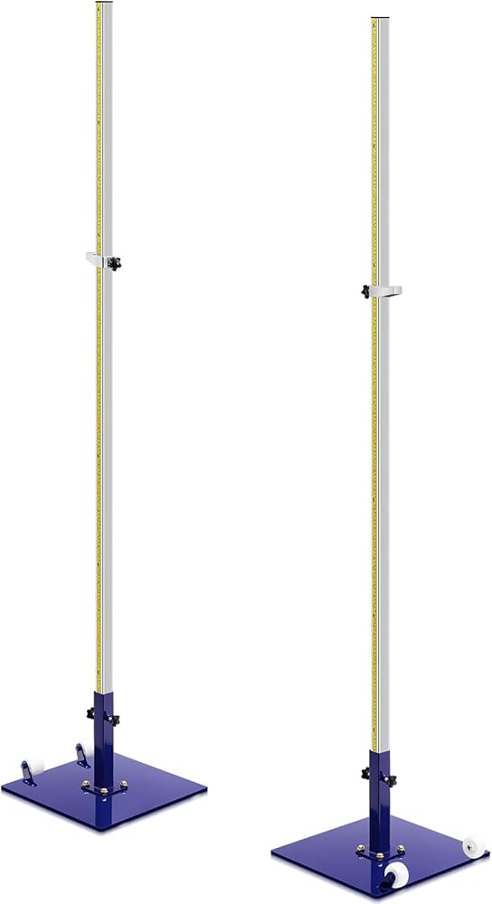 Portable Base: equipped with oversized 16-inch bases, each high jump standard is enhanced with wheels, ensuring stability and ease of movement; Whether applied indoors or at an outdoor sports meet, the sturdy base design guarantees a secure setup and effortless transportation, making it ideal for varied athletic scenarios; When fixing the scale rod on the base, please adjust it to an appropriate height for fixation to ensure the accuracy of the height and avoid affecting subsequent readings