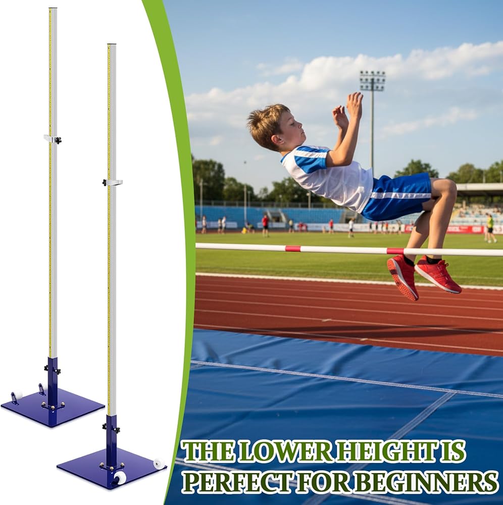 Comprehensive Package: this package includes two high jump frames and two pedestals, offering everything you need to set up a professional high jump environment; The thoughtful inclusion of all necessary components makes these high jump standards an unbeatable choice for schools, sports clubs, and professional training facilities