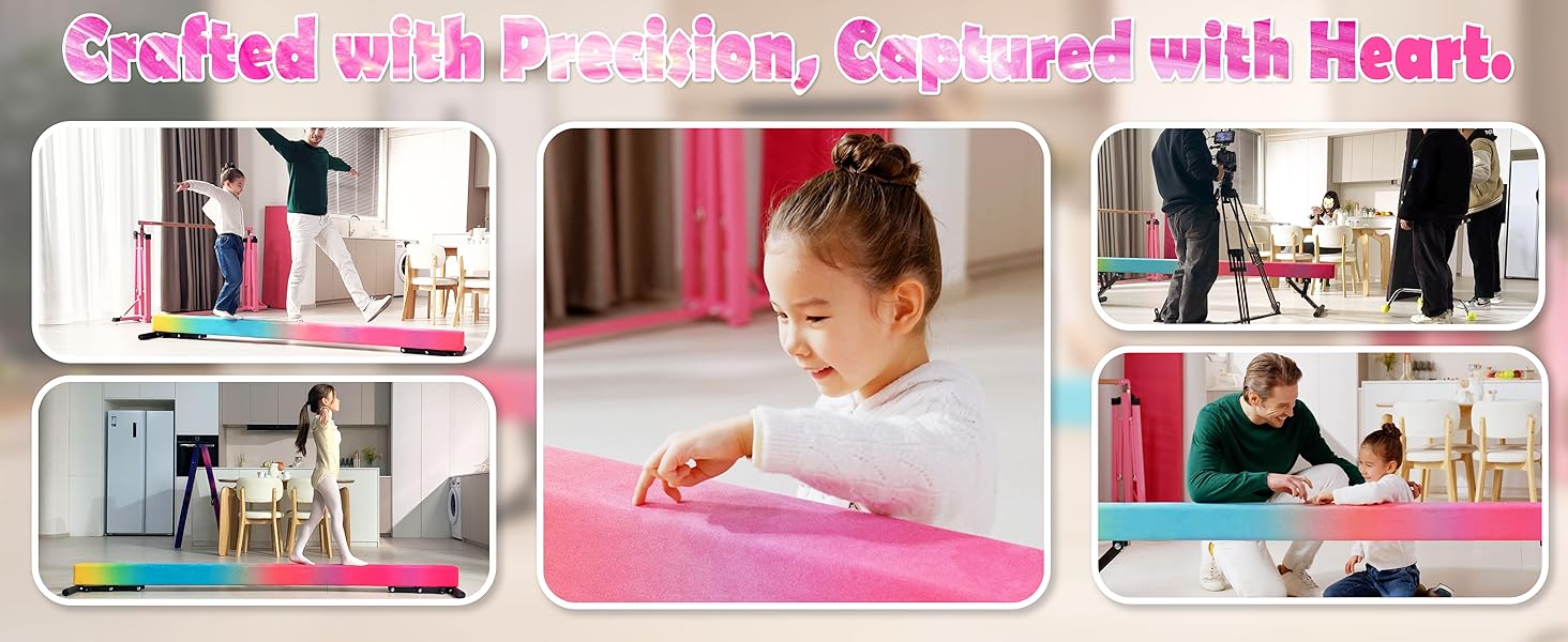 Triple-Layer Comfort Core – Gentle on Joints, Tough on Performance Solid wood core + shock-absorbing EVA foam + 3mm soft foam wrap + premium faux suede cover. This gymnastic beam cushions every landing, reduces joint stress, and provides perfect grip. Your child gets a professional feel without sacrificing safety. Excellent gymnastics training equipment for daily use. Suitable for balance beam for kids 3-5 as well.