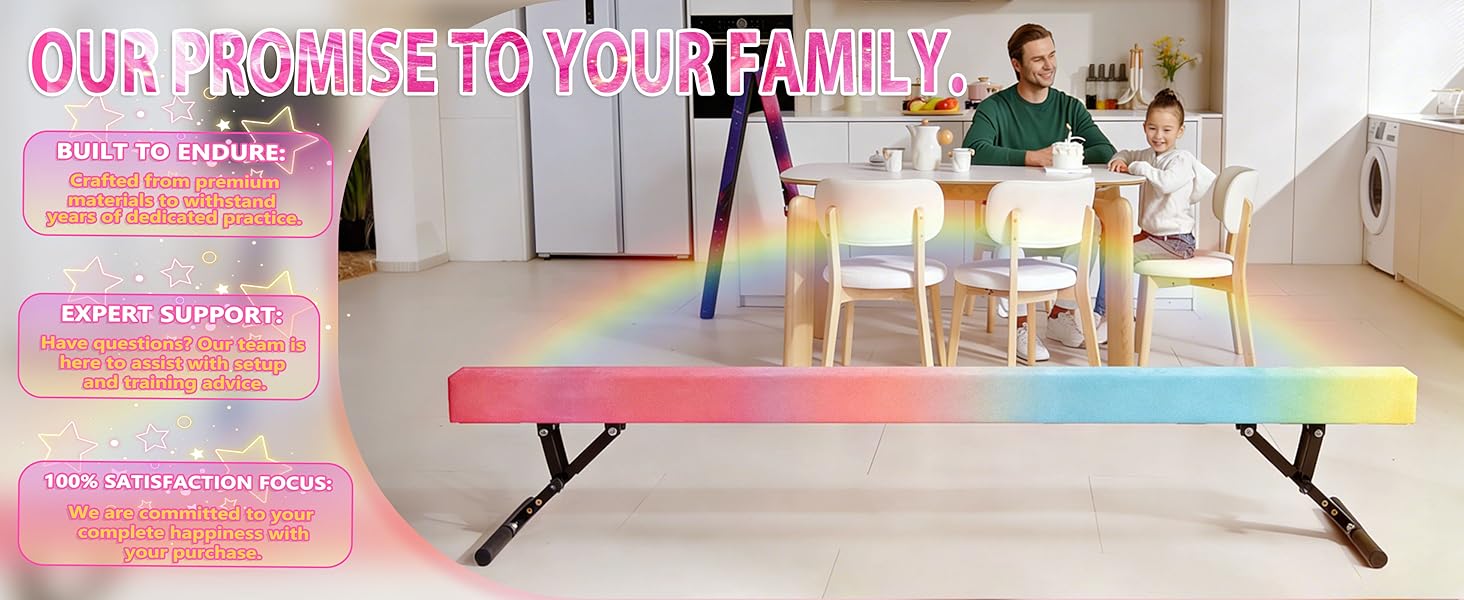 Family-Friendly Design – Fits Seamlessly into Your Home Lightweight enough to move, sturdy enough for serious practice. Sets up in minutes and folds flat for easy storage under beds. This foldable balance beam for kids blends with any decor. From living room to backyard, your little gymnast can practice anywhere with this indoor gymnastics equipment for kids.