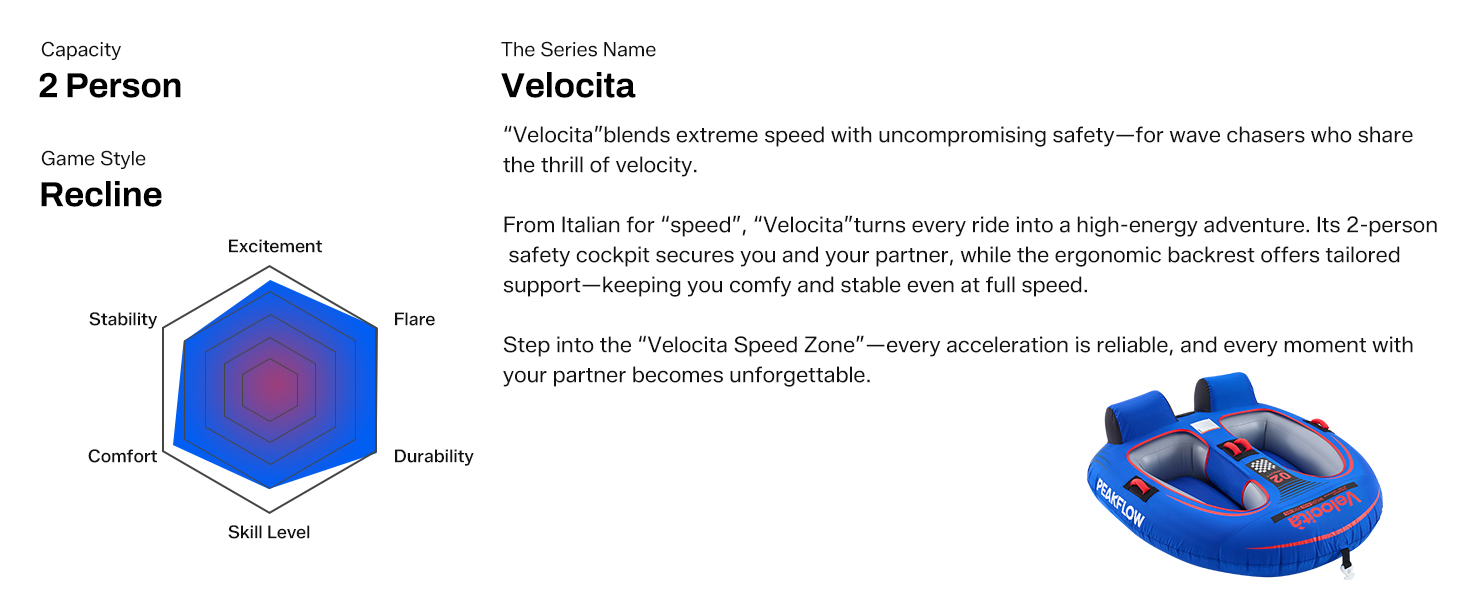 Unmatched Safety for Your Water Adventures: Innovative secure cockpit seating, paired with an ergonomic backrest, greatly enhances safety and stability. Rest easy—no need to fear being thrown off. This towable tube is safe for kids and adults alike who crave a secure and comfortable ride