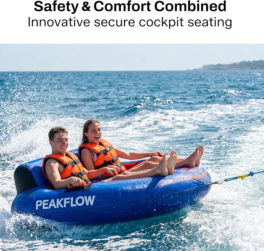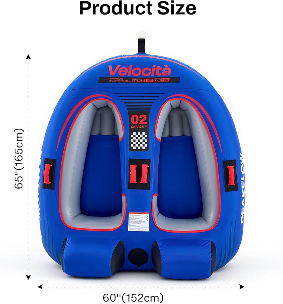 PEAKFLOW Towable Tube,Boat Tube,2 Rider Models,Tubes for Boating,Inflatable Boat Tubes and Towables,EVA Foam Pads and Handles,Swift Connect Rapid Boston Valve, 65x60Inches Inflated,Velocita Series