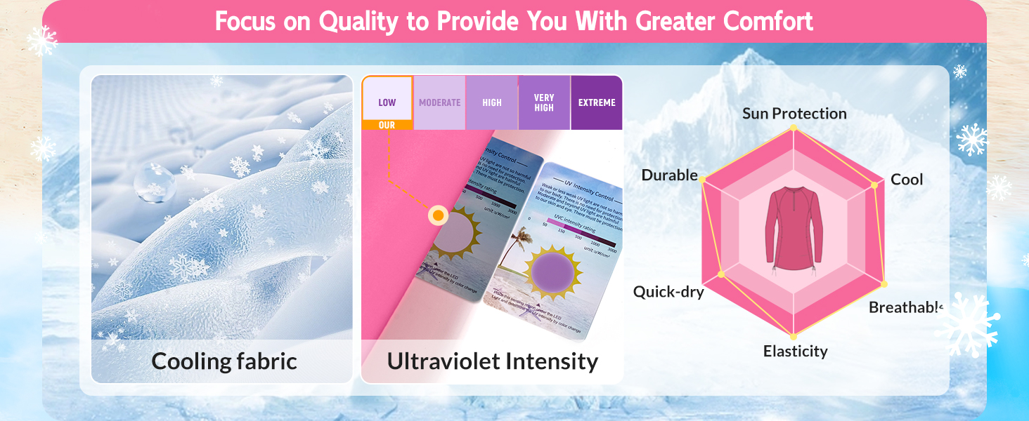 【Thumb Holes & Quarter-zipper】Our women's swim shirt have thumb holes to keep the long sleeves in place and protect more of your hands.The front 1/4 zipper design makes it easy to put on and take off while beautifully showcasing your figure.