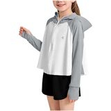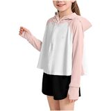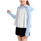 Sun Hoodie Girls Rash Guard Long Sleeve Shirt UV Protection Clothing Full Zip Up Hooded Fishing Shirts with Thumb Holes in Kuwait