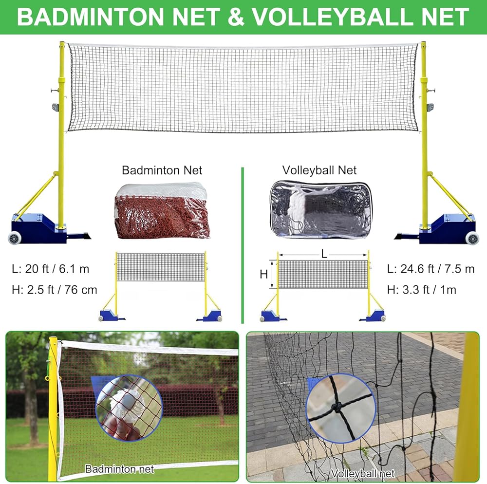 【Included Volleyball Net & Badminton Net】This badminton volleyball sets for backyards features a 24.6ft(7.5m) volleyball net and a 20ft(6.1m) badminton net, allowing you to easily switch between sports. Enjoy various activities with one set