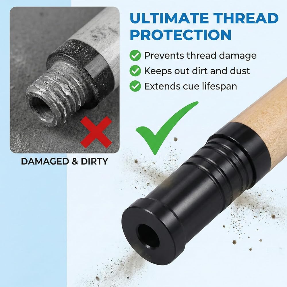 【Precise Thread Compatibility】 Designed for 5/16" x 18 thread cues, these stick joint protector pool accessories offer a secure, precise fit. This exact compatibility prevents cross-threading, ensuring each pool cue protector stays firmly in place to protect delicate joint pins and ferrules from dust and impact