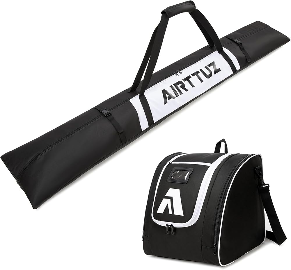 Fits Most All Skis: This two-piece set includes a spacious ski boot bag and ski travel bag. The ski boot bag measures 15 x 14.5 x 13.5 inches, and the ski bag can hold skis up to 200 cm in length as well as poles. Please purchase after measuring the size of your skis.