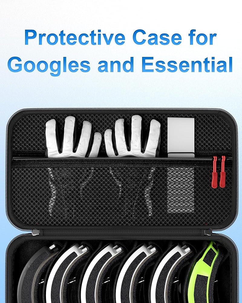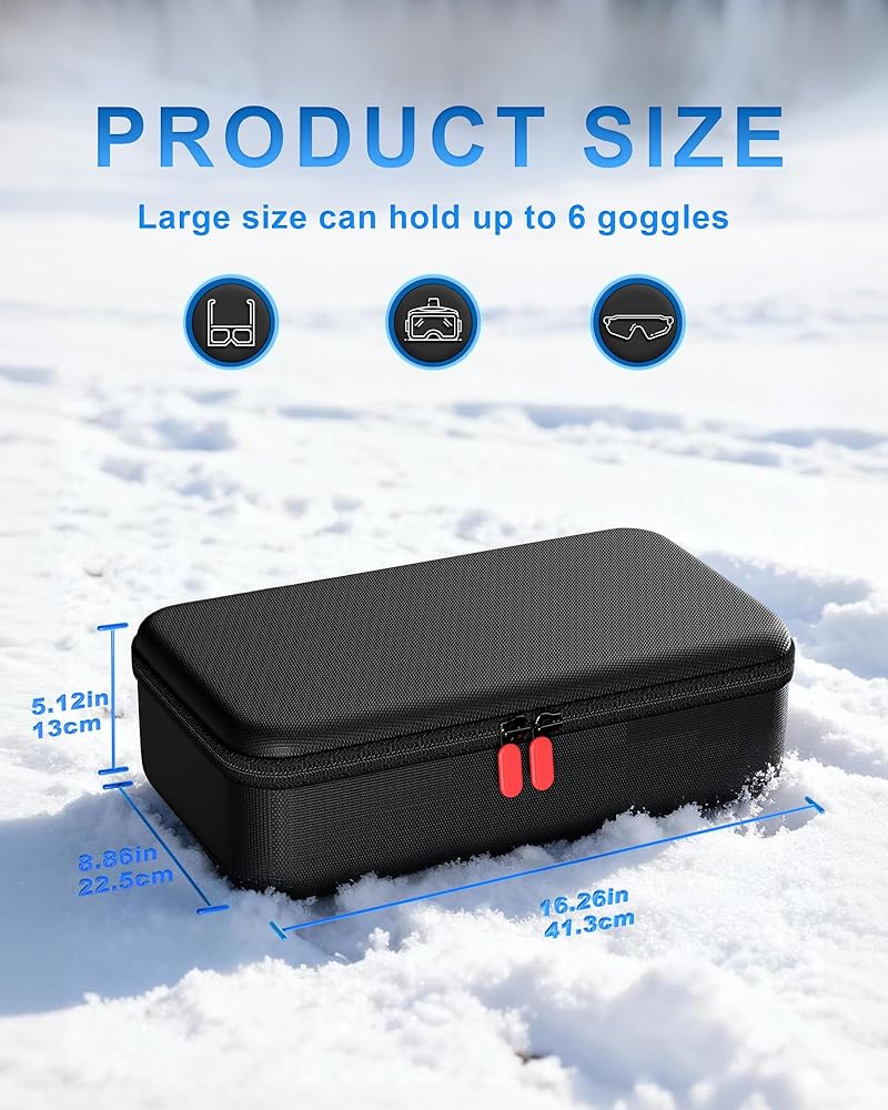 Easy-to-carry case suits family or group outings and meets various needs by accommodating different goggles