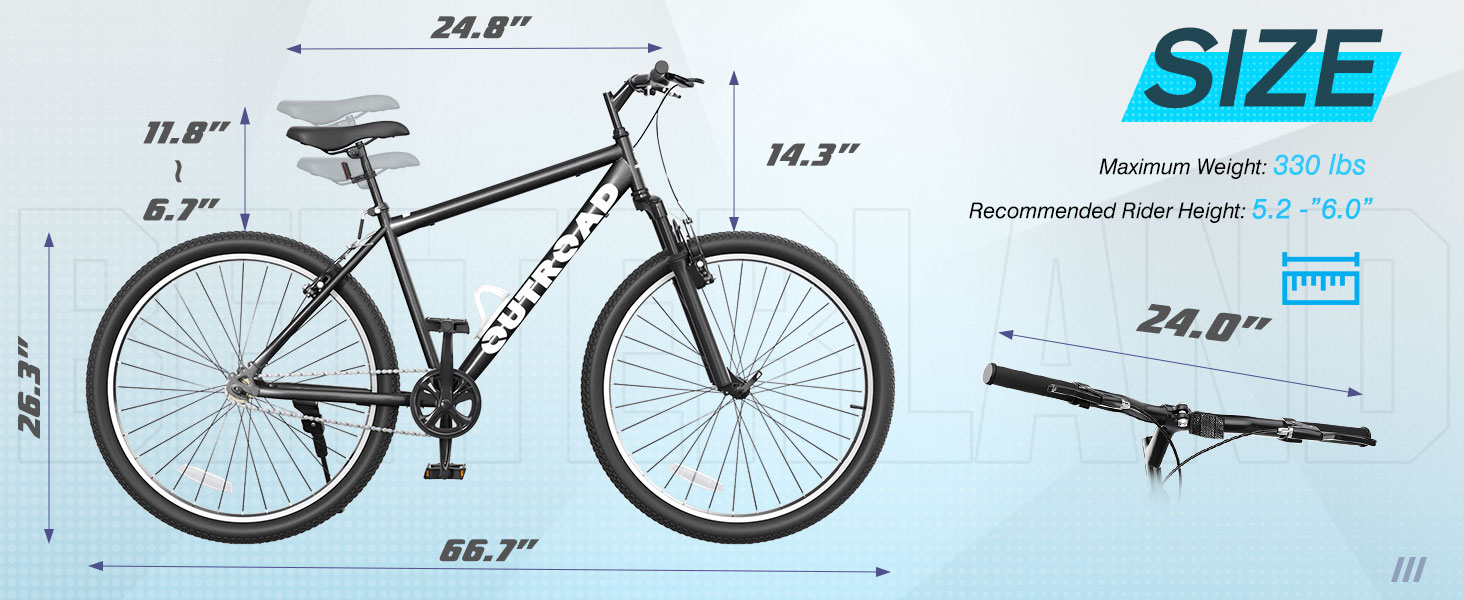 Comfortable Seat Design: This bikes for adults is equipped with a cushioned comfortable seat that conforms to ergonomics and can support up to 11 inches of adjustment up and down, thus adapting to the needs of different groups of people. Even during long rides or rough paths, it can maintain support and comfort.