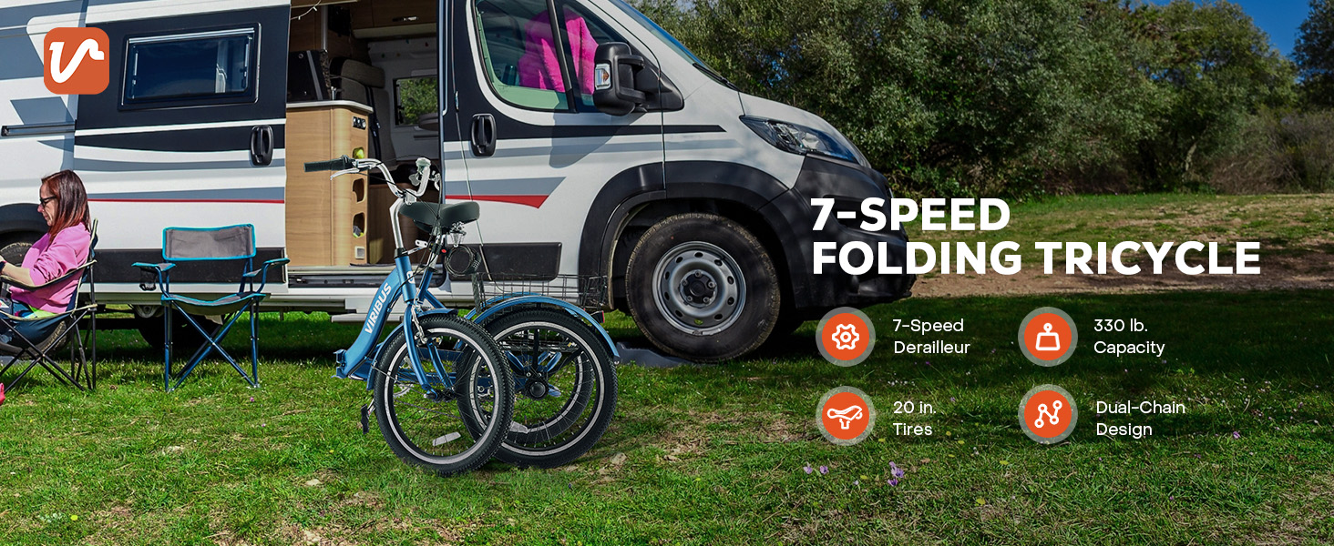 20 in. Folding Adult Tricycle: This 20 inch folding adult tricycle by Viribus is your go-to partner for adventure, easily stashing into pickups for spontaneous outings. It's ideal for leisurely rides, quick trips, and navigating city streets