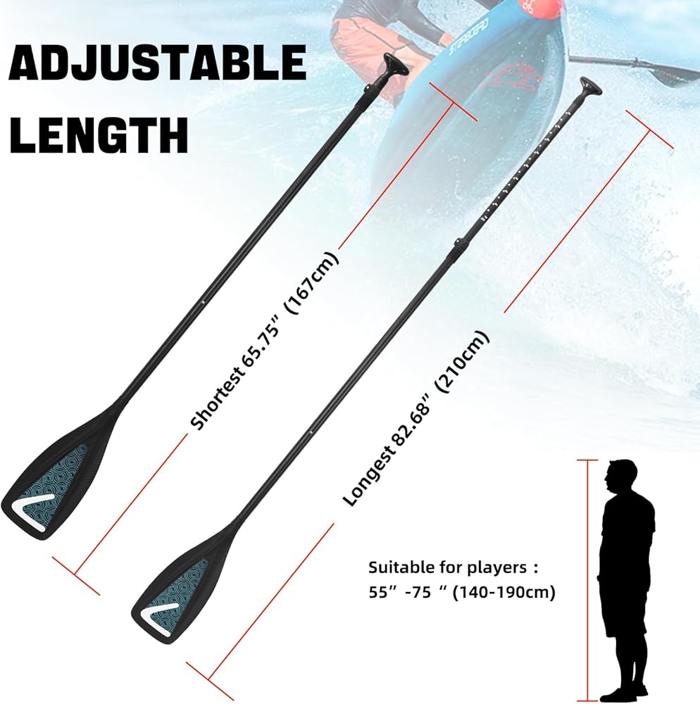 Easy Adjustability: Our paddle adjusts effortlessly from 65.75 inches to 82.68 inches (167 cm to 210 cm), perfect for paddlers over 5 feet tall. For the best fit, add 6 to 8 inches to your height to find your ideal paddle length. Just make sure the maximum scale line stays below the clamp to avoid any damage. With this flexible adjustment range, you get a comfortable and efficient paddling experience tailored just for you.