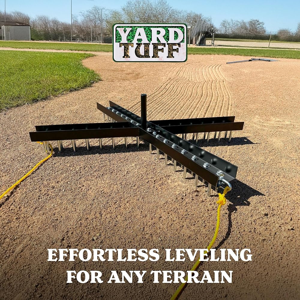Customizable Depth Control: Add weights to the 5 3/4-inch by 1 1/4-inch center post for a deeper drag, giving you full control over leveling depth; includes tow rope for easy attachment and effortless field maintenance