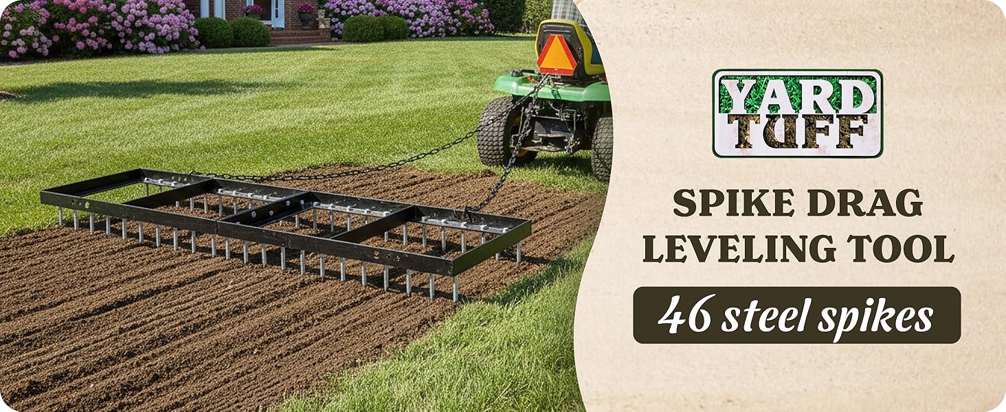 Heavy-Duty Spike Design: Features 46 durable spikes that break up compacted soil and help smooth gravel or dirt surfaces for more consistent, even results
