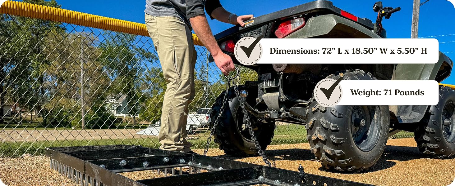 Adjustable Drag Depth: Allows added weight for deeper soil penetration when working on packed, uneven, or high-traffic areas