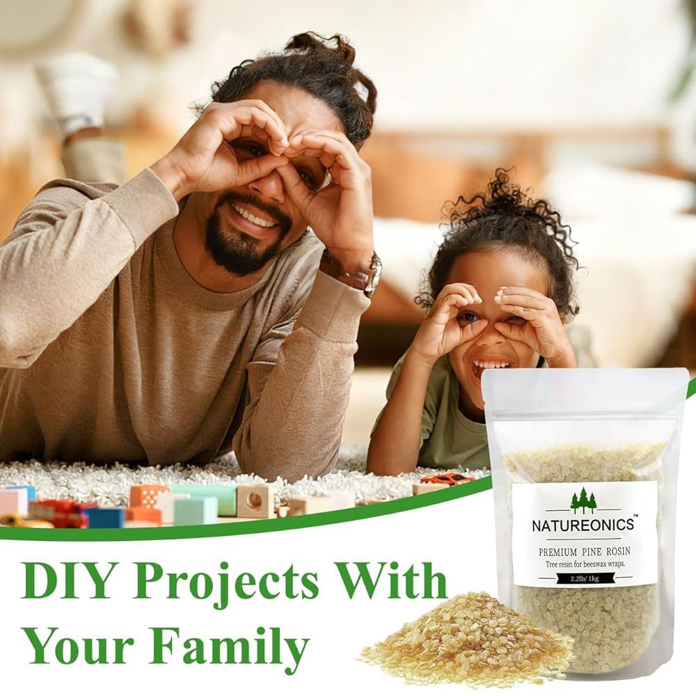 • Pine Resin for Beeswax Wraps: include a bag of pine resin, containing 2.2 pounds pine resin which is suitable for adding stickiness to beeswax wraps and is ideal for people wanting to create their products; It is made from quality pine resin, ensuring a pure and natural material for your needs; It comes in a faint yellow color, providing a subtle and appealing aesthetic to your beeswax wraps