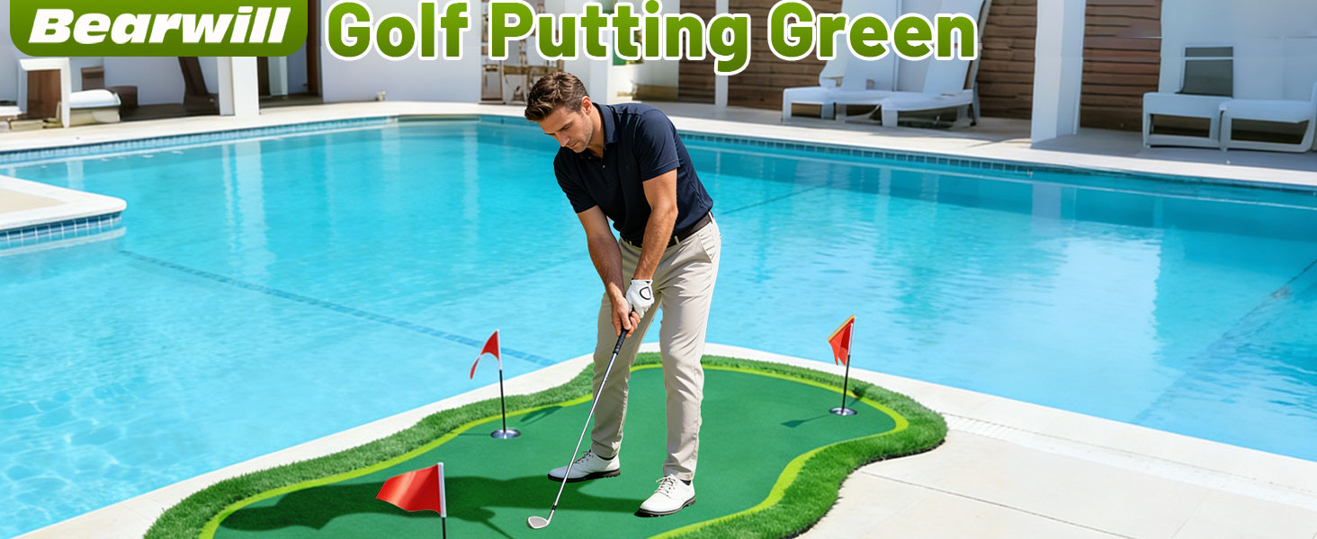 More Golf Fun----Bearwill golf putting green is equipped with a variety of accessories to suit all your training needs. It includes a movable cup, a black slope mat, and three ball hole cups, all designed to provide a comprehensive practice experience in any setting. These accessories are both practical and portable, making your practice sessions more efficient and convenient. Not only will they help improve your skills, but they'll also make your golf practice more enjoyable and engaging.