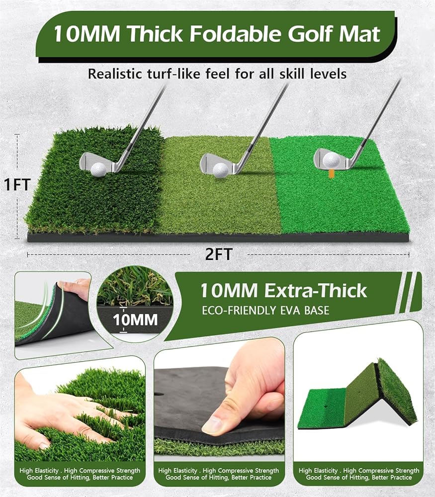 ✅ 1* 2*1ft Foldable Tri-turf Golf Hitting Mat