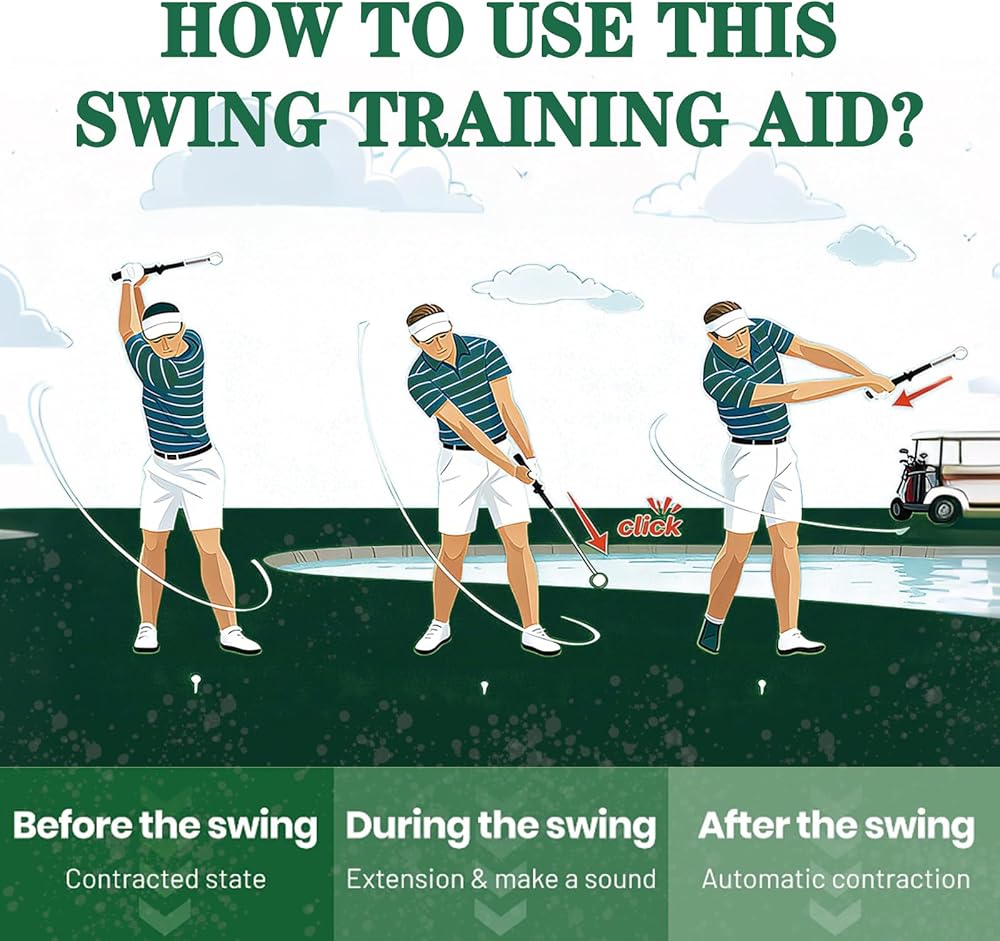 【Retractable Click Feedback Golf Swing Training Aid】Our Quewpk retractable golf swing & grip trainer delivers crisp "click" feedback when your swing mechanics are precise, instantly refining rhythm, speed, and power. Designed exclusively for right-handed golfers, it builds reliable muscle memory for consistent ball striking—ideal for beginners and seasoned players alike.
