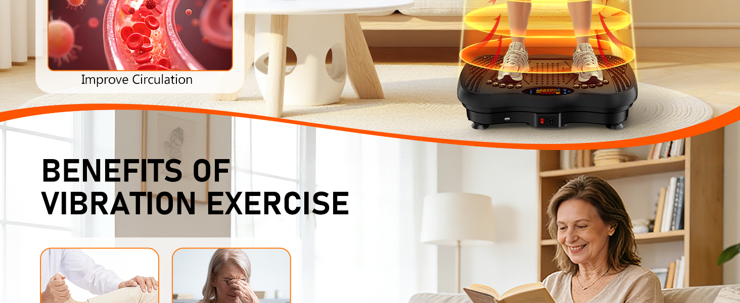 Multiple Experience: Connect the phone with Bluetooth to play music. The melody of music effectively maintain exercise rhythm, relax the mind and body. The surface of the vibration plate features a magnetic stone design, providing a soothing foot massage during workouts to alleviate fatigue after physical activity.