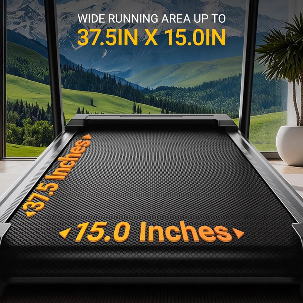 Spacious Running Surface & Space-Saving Design: Enjoy a comfortable, natural stride on a full-size 37.5” L x 15” W belt. After your session, this innovative foldable treadmill easily folds and rolls away for upright storage, making it the ideal, space-conscious fitness solution for apartments, home gyms, and under-desk office setups