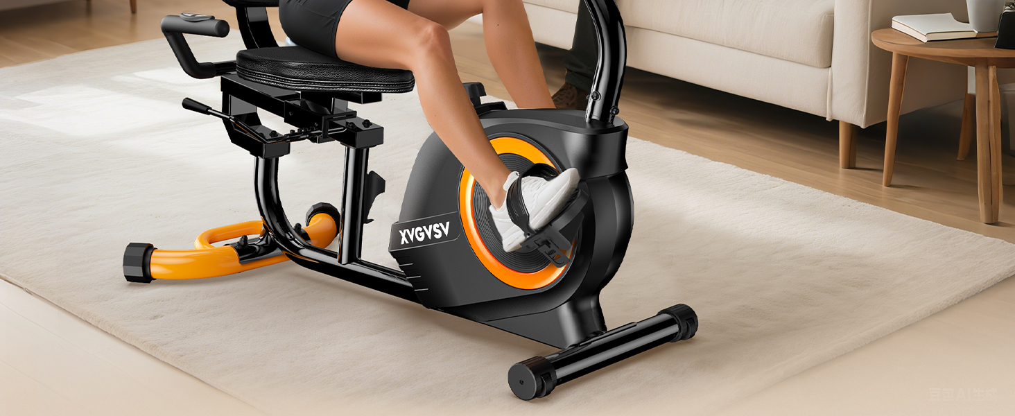 【Quiet Strength Built to Last】Constructed with commercial-grade steel, this recumbent stationary bike provides rock-solid stability and supports up to 400 lbs. The advanced magnetic resistance system ensures a whisper-quiet ride, perfect for early mornings or shared living spaces. Ideal for users who value a stable, quiet, and durable exercise bike for home workouts.