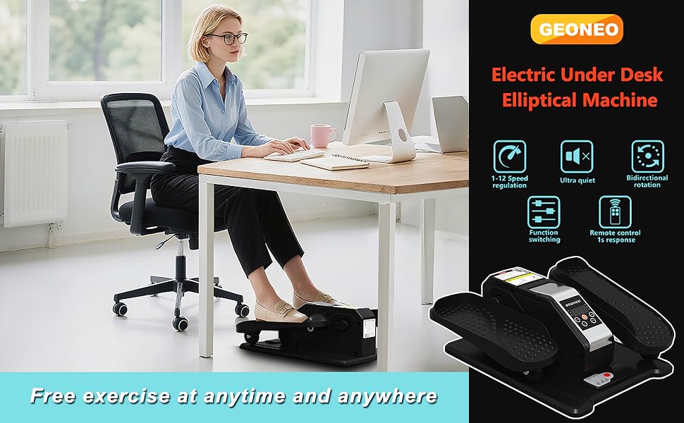 Experience the convenience of staying active while seated with the Under Desk Elliptical Machine. This electric elliptical leg exerciser is designed specifically for seniors, providing a low-impact workout that promotes circulation and mobility. The quiet and portable design allows you to exercise discreetly at your desk or while watching TV. With 12 adjustable speed settings and a remote control, you can customize your workout intensity. Compact and easy to store, this seated pedal exerciser is perfect for maintaining an active lifestyle, even with limited mobility. Stay fit and healthy from the comfort of your own home or office.
