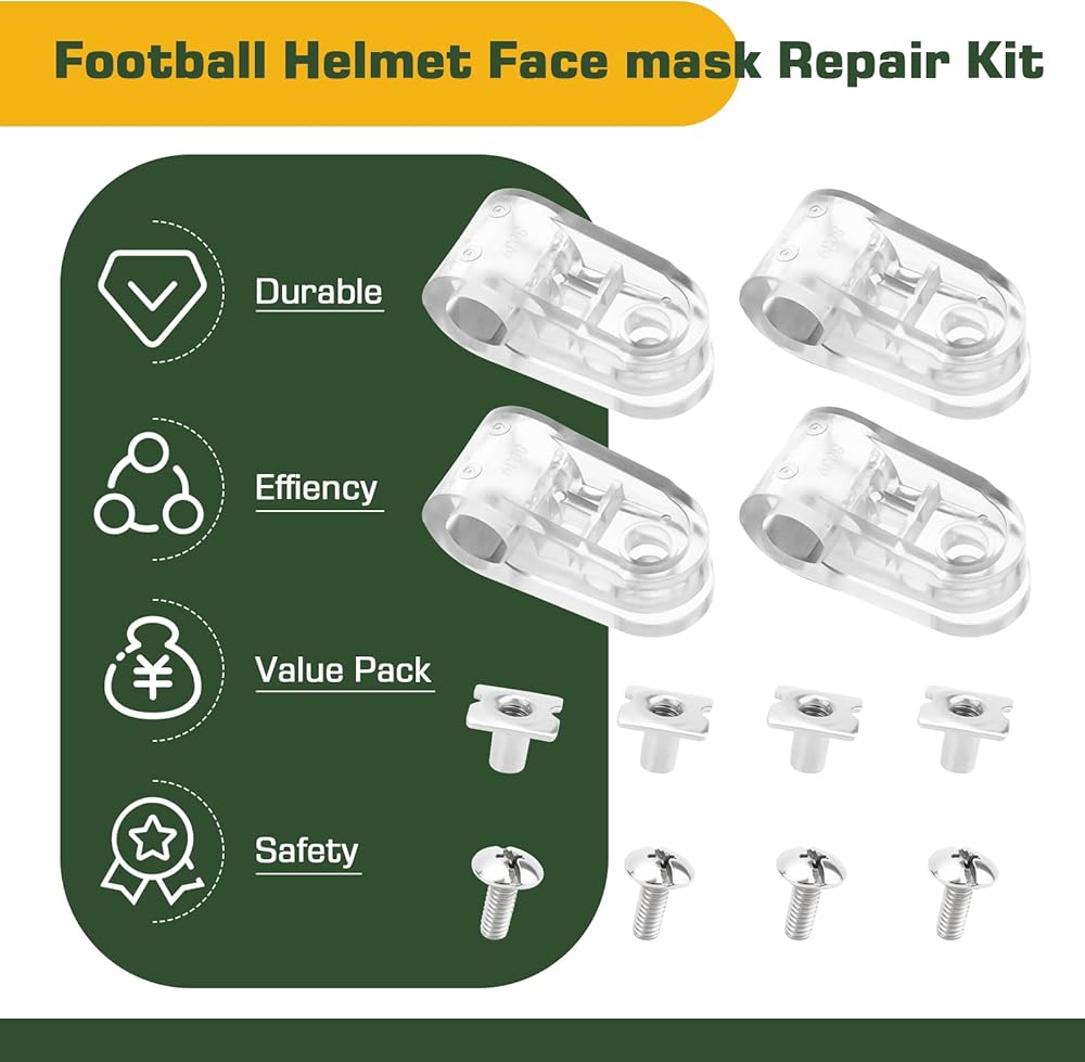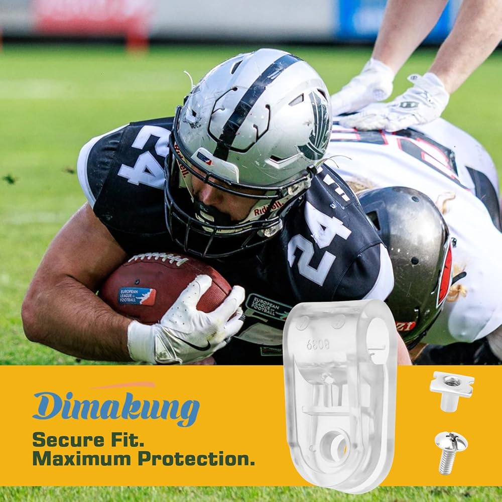 Football helmet facemask clips kit for riddell securely fastens the football helmet facemask, preventing it from detaching and causing head injuries. It enhances user safety and is an essential accessory for Riddell football helmets.