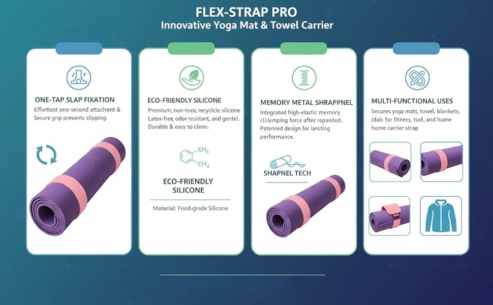 【One-Snap Security】Simply slap it on! Our unique band secures your mat in a flash with just one snap—no buckles, no knots, no hassle. Get to class faster
