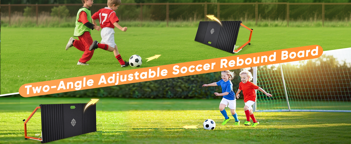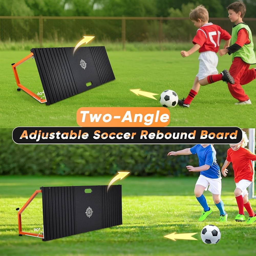 Dual-Angle Training System: Switch between 90° (ground shooting) and 60° (aerial passing) angles to customize your drills. Whether you're practicing close-range shots or lofted passes, this rebounder board soccer adapts to your needs and helps you sharpen every key skill on the field.