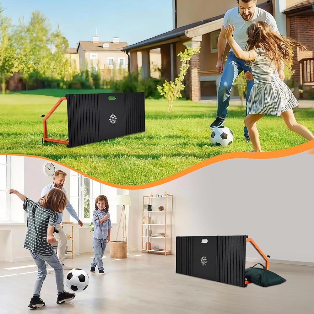 Durable and Robust: The front rebound panel is crafted from high-performance HDPE material for responsive bounce, while the full ABS metal square tube frame ensures ultimate structural stability. This construction guarantees the soccer rebounder withstands intense impacts and maintains long-term performance.