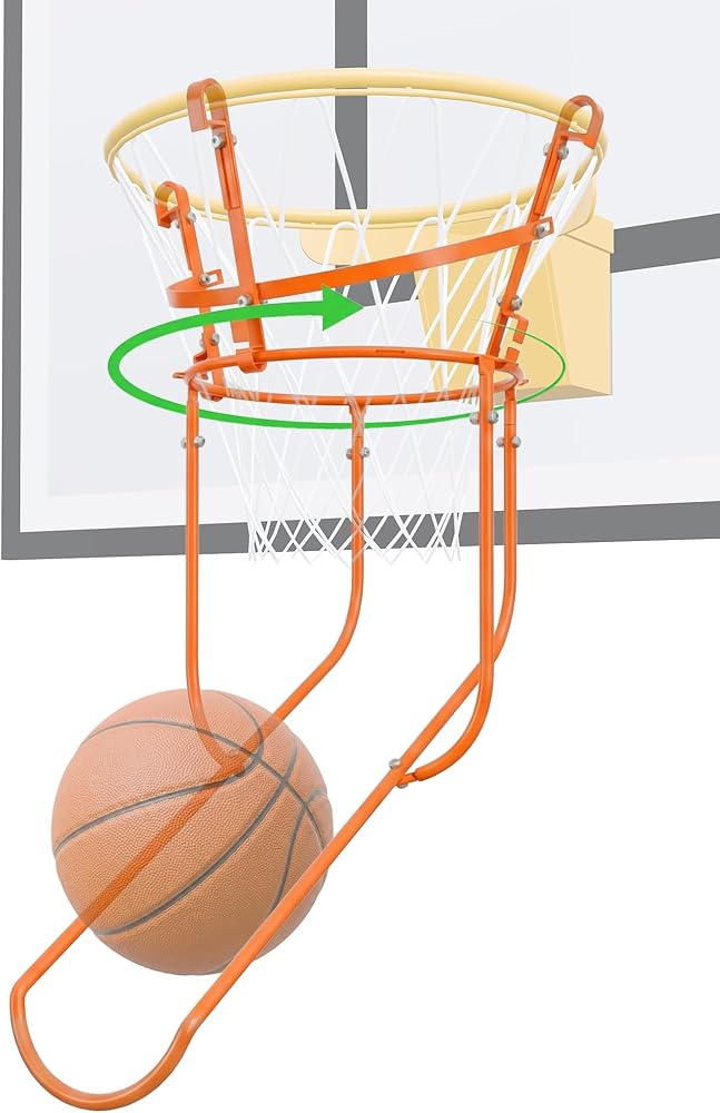 Rotatable Basketball Return Attachment: Heavy Duty Basketball Rebounder with Stable Large Hooks Set for 14"-18" Rim Baskets - Training Accessories for Shooting Practice Outdoor & Indoor