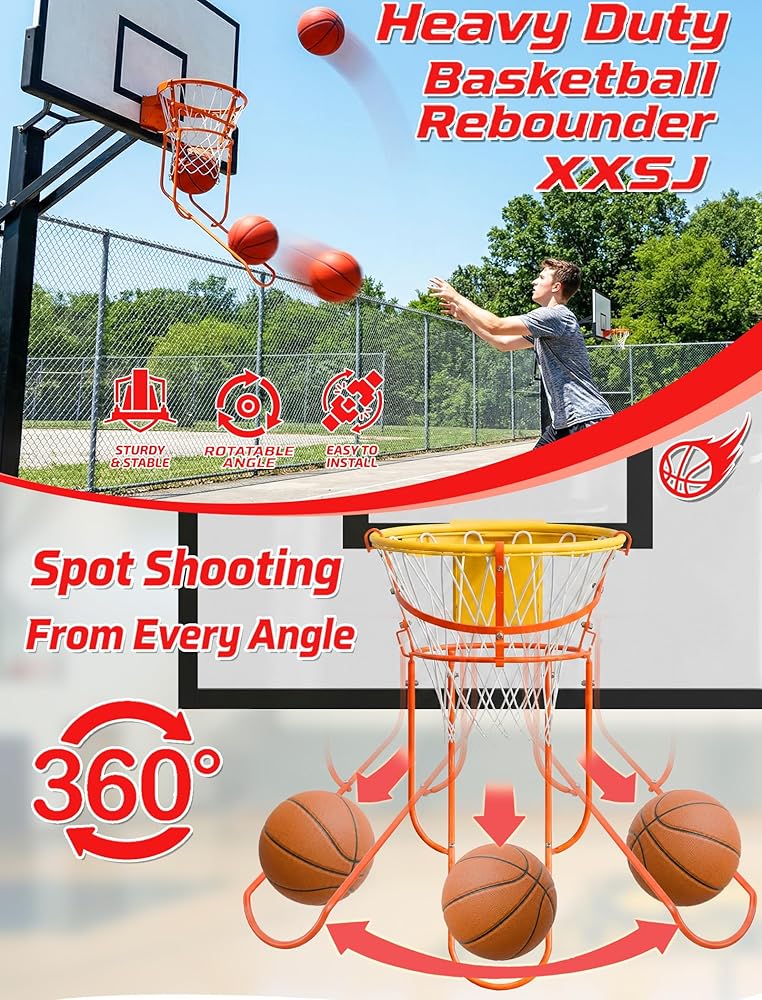 Premium Quality: Basketball hoop rebounder is made with high-resistance materials and a reinforced structure. Built to withstand long-term basketball impact, suitable for frequent individual or team training.
