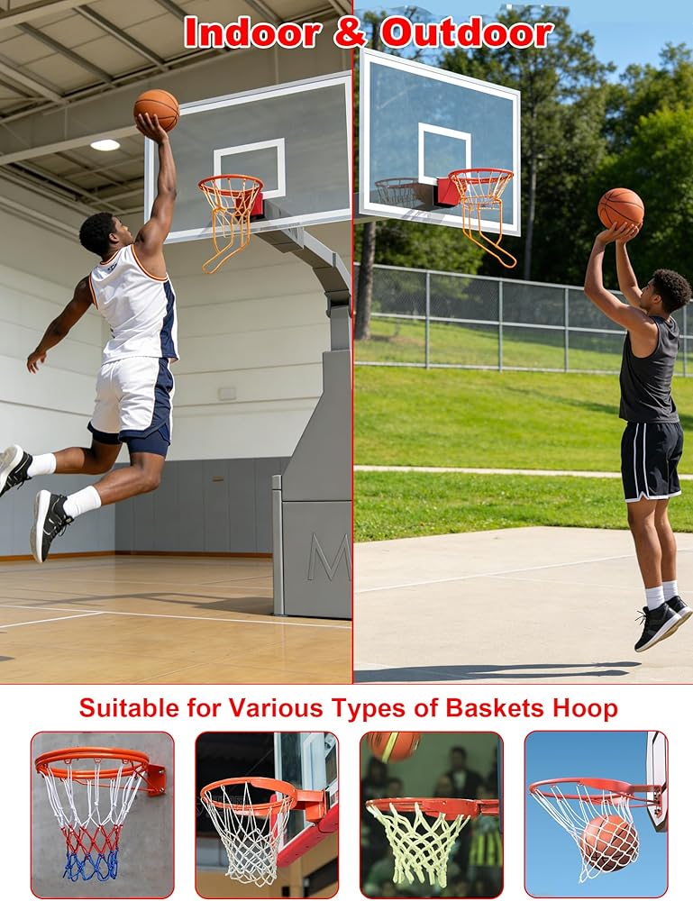 Widely Compatible & Securely Attached:Non-slip Heavy-Duty Large Hook Set fit common rim sizes 14-18-inch hoops. The stable hook set ensures a firm, slip-resistant grip on various Hoops. Ideal for multiple settings such as indoor courts, outdoor parks, yards, and gyms.
