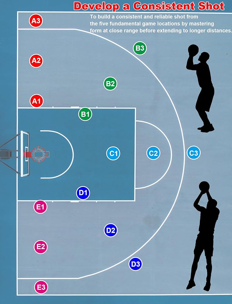 Develop a Consistent Shot:Rotatable Basketball Return Attachment is a structured system focused on the five key scoring positions: corners, wings, and top of the key. Develops muscle memory, consistent form, and game-speed catch-and-shoot skills to directly improve your shooting efficiency in real-game situations.