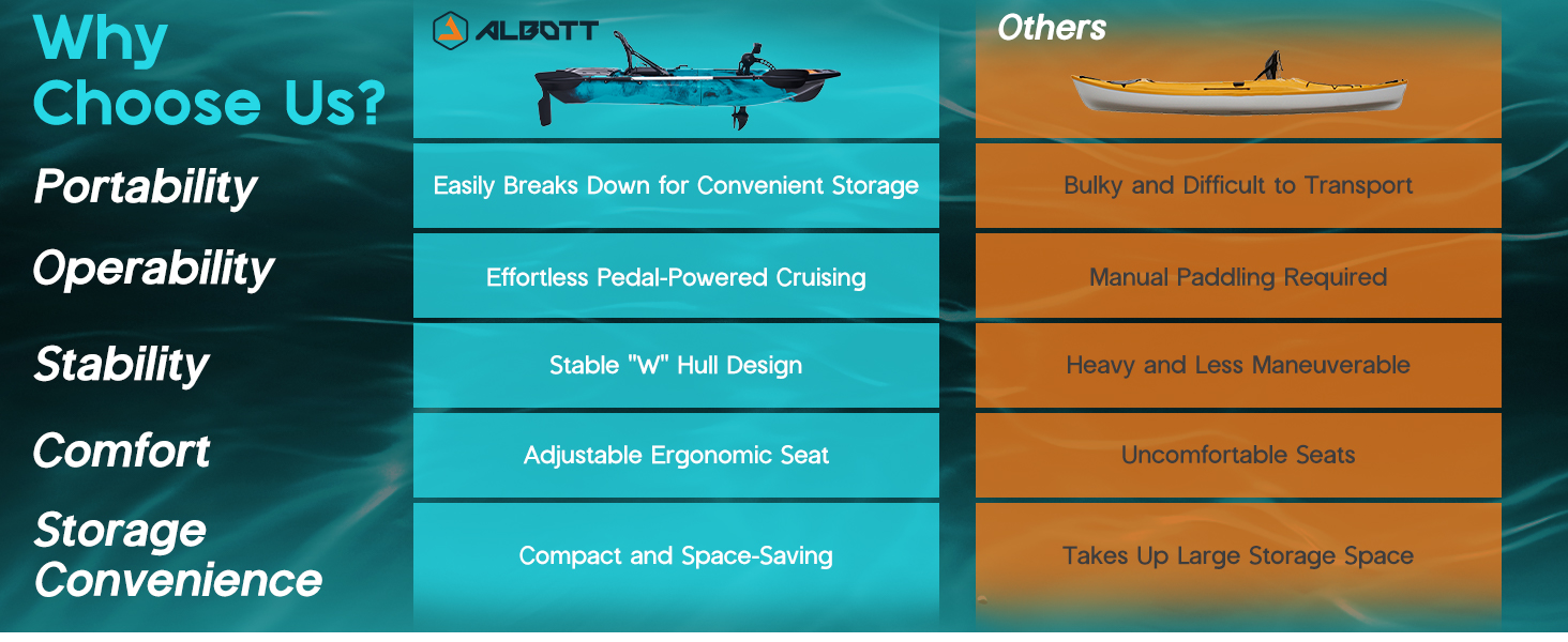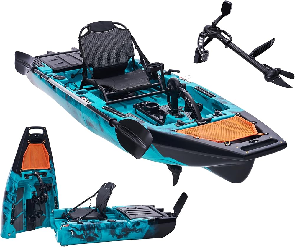 Customizable & Flexible Pedal Kayak: Tailor your fishing experience with an adjustable seat and ample storage space for all your gear. Additionally, customize your kayak with modular upgrades, adding accessories in multiple areas to suit your needs