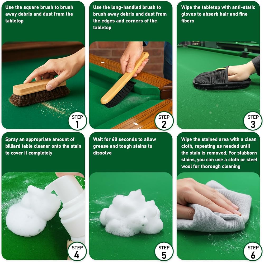 Keep your pool table in top condition with our 8-Piece Pool Table Cleaning Kit.