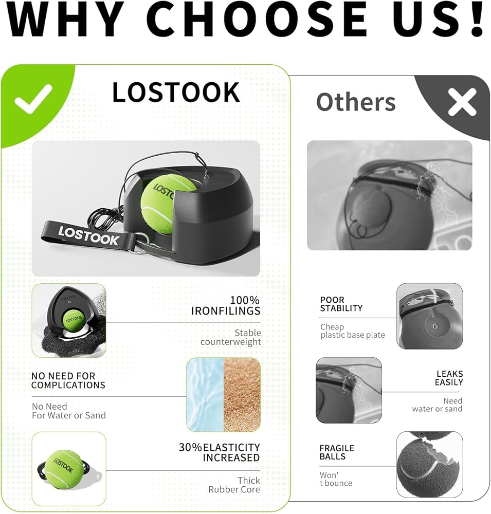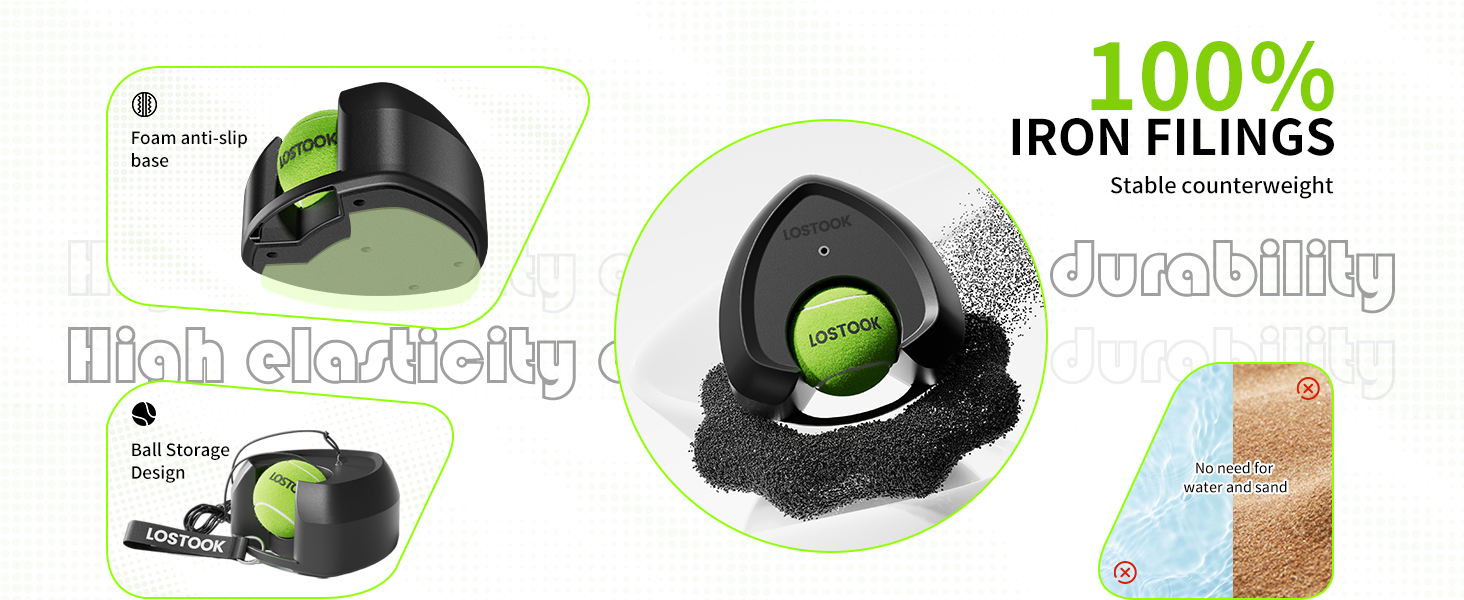【Lostook Tennis Trainer】Eliminates the tedious process of filling with water or sand prior to training. Features an integrated weighting system for immediate, stable use straight out of the box. Each base incorporates a central ring-locking slot for efficient storage of unused tennis balls. The reinforced load-bearing chassis includes a portable handle, enabling effortless one-handed movement and relocation.