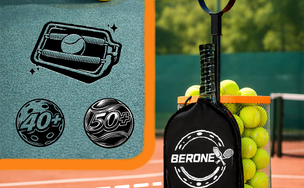 [EFFORTLESS BALL COLLECTION 🎾] Stop bending and collect faster with the BERONEX tennis ball collector. The spring-assisted pickup system grabs balls instantly while rolling smoothly across hard courts, clay, and grass. Lightweight yet durable, this pickleball ball collector helps players gather 50+ balls quickly and spend more time training. Ideal for coaches, clubs, and individual athletes seeking comfort and efficiency during practice.