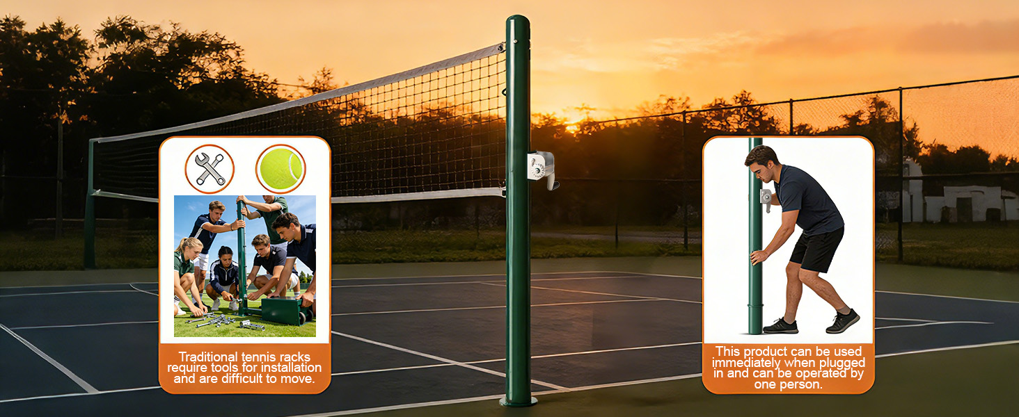 EFFORTLESS SETUP & ADJUSTMENT: Features pre-installed ground sleeves for permanent, wobble-free installation on any surface (grass, clay, asphalt). Dual reels with hand cranks allow quick, precise net tensioning from both sides, achieving perfect tournament-level tightness in minutes.